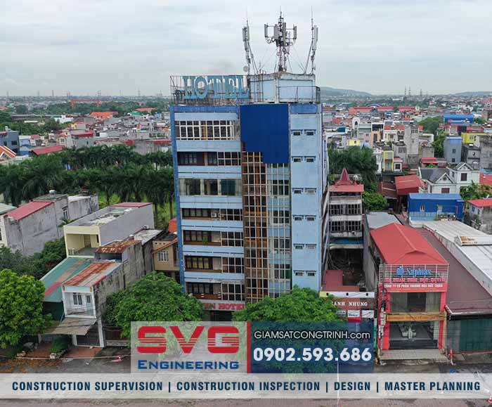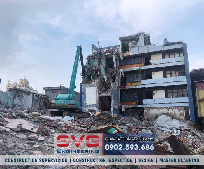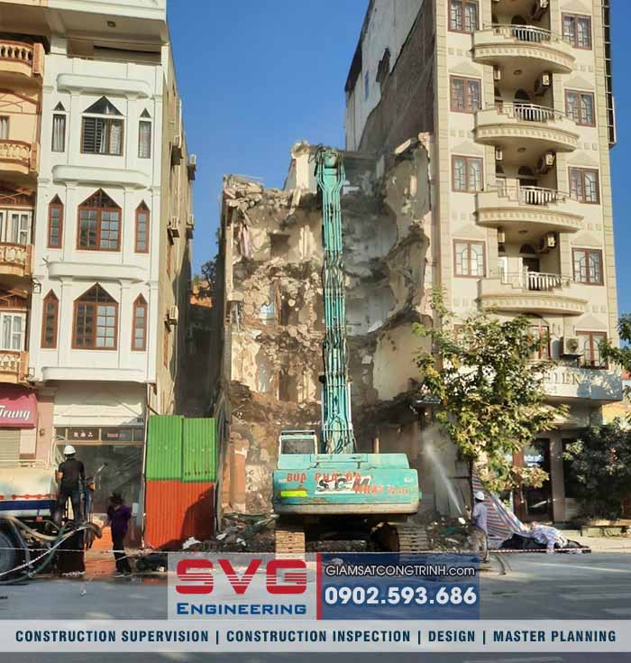 Construction methods to demolish building is an extremely necessary job to ensure the safety of workers, lives and properties of people around during the demolishing construction process. The building construction demolition is very dangerous but very necessary in construction because when it is necessary to demolish the old building to build a new one, or the construction build contrary to the planning or for other reasons. The following article SVG Engineering will share with readers and customers about the demolition construction method of a 8-storey building in Hai Phong, which has been reflected by many TV stations as Hai Yen Hotel.