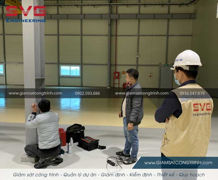 Specifically, it is shown that the construction project "TAESUNG Vietnam factory" after a period of use has a number of items that need to be changed in function to match the current use needs. At that time, SVG Engineering will conduct a test to answer the Investor's question: Is it possible to change the function (or upgrade the floor) or not, if not, at what position should it be reinforced?. In addition, the current state of the TAESUNG factory also has a few items with technical problems.