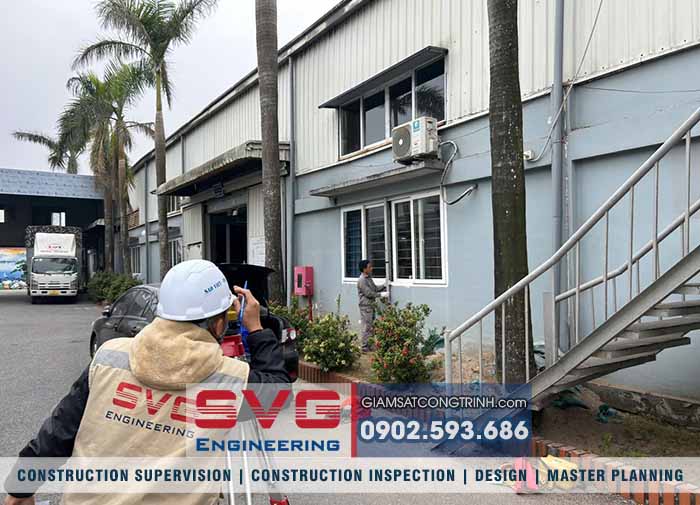 The purpose of workshop quality inspection is to record defects, damages and deviations appearing on the components, the actual geometric parameters of the construction structures and their components, and determine the conformity or deviation of these parameters with the design. Analysis and evaluation based on TCVN (Vietnamese standards) to determine the level of danger of the factory. Below is a leather shoe workshop project that SVG Engineering inspected in early 2025, please follow: