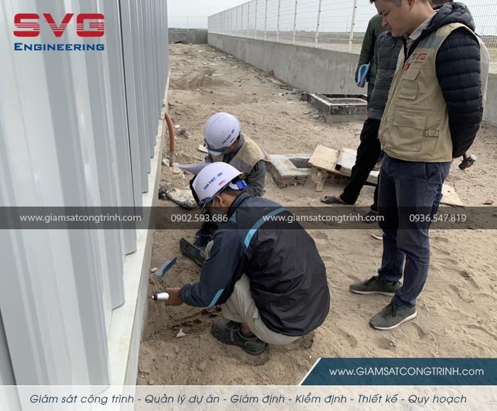 SVG Engineering engineer has directly checked the actual status of infrastructure, technical items of DongKang factory, determined the construction quality of the work compared with the requirements of the design and regulations, combined with visual assessment of the current status. The objective of the inspection is to check, evaluate, change the function of the work and inspect to determine the cause of the failure of the work.