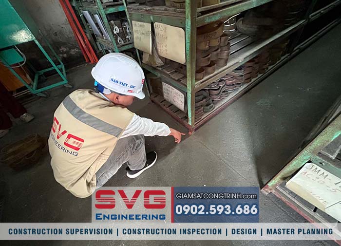 Ensuring that warehouses are safely inspected and compliant with required standards is always essential. Currently, the quality inspection of Dinh Vang Warehouse is carried out by SVG Engineering – Sao Viet Construction Design Consulting and Inspection Joint Stock Company, a construction inspection firm with 20 years of experience. SVG Engineering conducts thorough inspections to ensure that Dinh Vang Warehouse has a sound structural system and meets all necessary conditions to continue safe and efficient production operations.