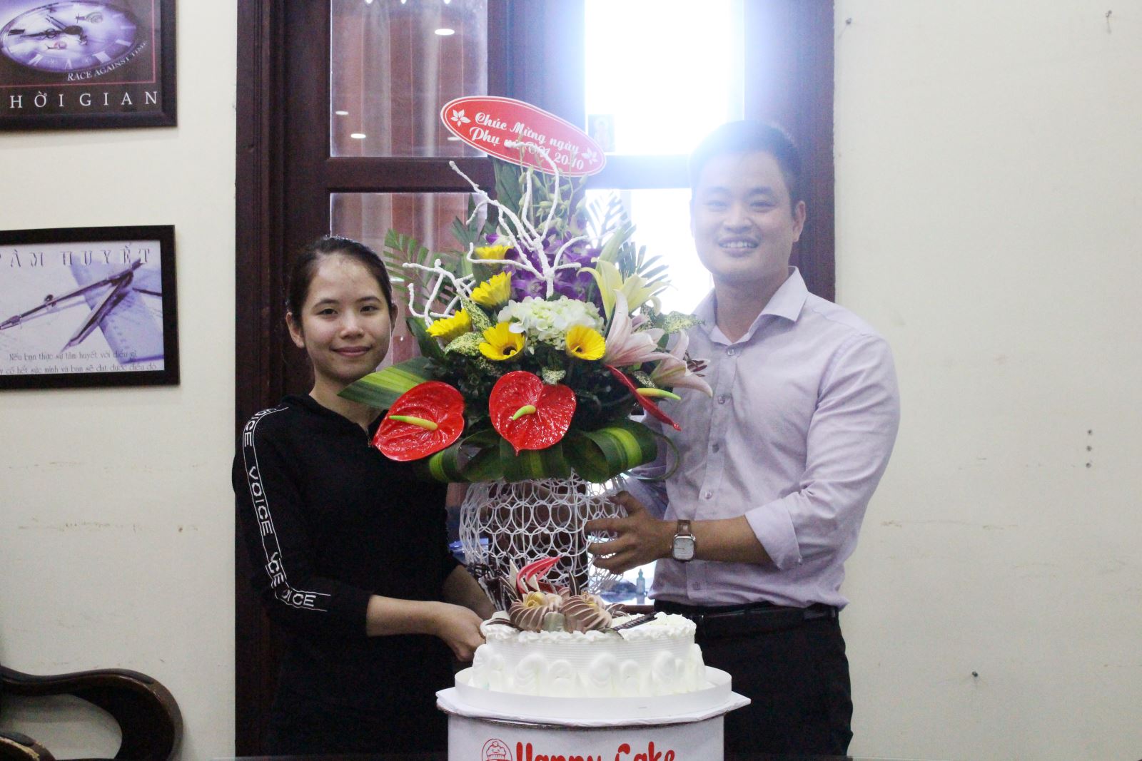 This year's Vietnam Women's Day Festival 20-10 this year has a cake with flowers and most importantly, the presence of the leaders of the two companies and all the women. In the joyful and warm atmosphere, Mr. Truong Duy Thang - the representative of SVG company's board of directors sent the most meaningful and sincere congratulations to the sisters. Wish you always beautiful, have a lot of health and good work, and affirm your roles and contributions to the development of the Corporation.